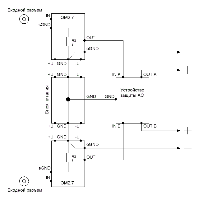 Данный усилитель, как и ОМ3, имеет защиту от короткого замыкания в нагрузке.