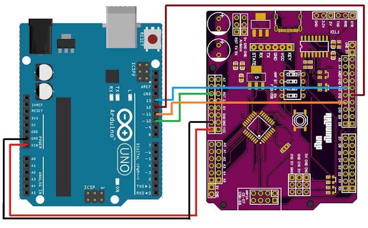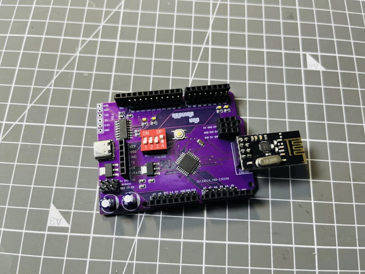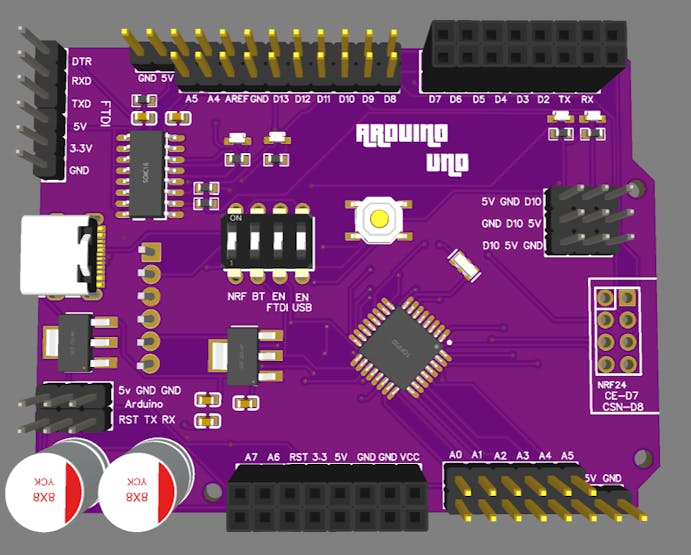 Nrf24L01 is mostly used with Arduino as remote-control purpose. I added headers of NRF to one side of my Arduino board so that the module can be directly plugged in to the headers. All the connections of wires are labelled on the Arduino board PCB silk screen layer.