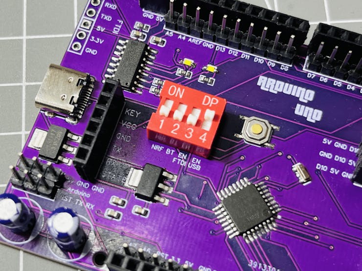 I also added headers for the Bluetooth module. Offers to program the board wireless over Bluetooth. But we will cover that feature in another article. This module uses Serial protocol for the interfacing. And same DIP switch is used to ON/OFF the module.
