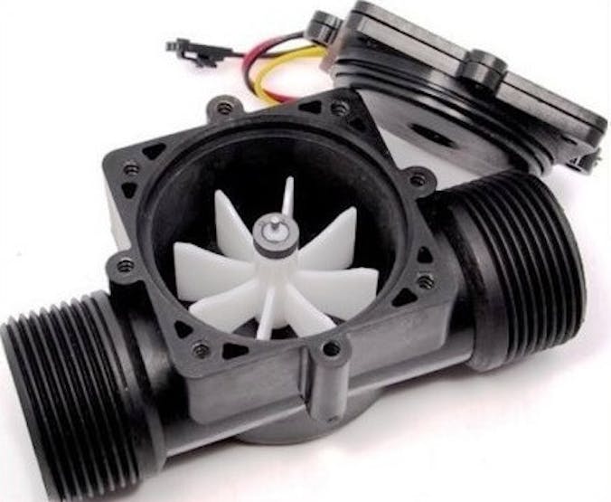 YF-S201 Hall Effect Water Flow Sensor has an embedded hall effect sensor, and it produces electrical pulses each turn when water flows. The pulse signal generated by the sensor is a square wave, so we can easily convert the pulse to the flow rate with: