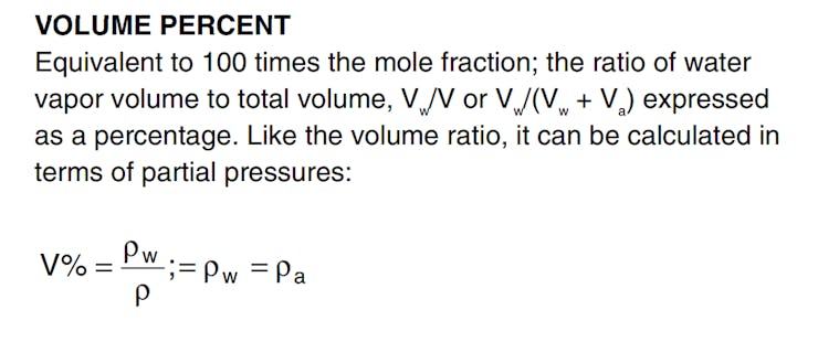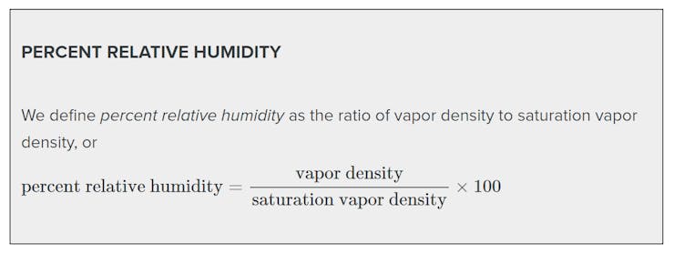 percent relative humidity = (vapor density / saturation vapor density) x 100
