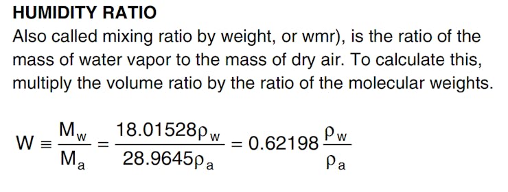 humidity ratio air (x) = (percent relative humidity / 100) x 0.62198