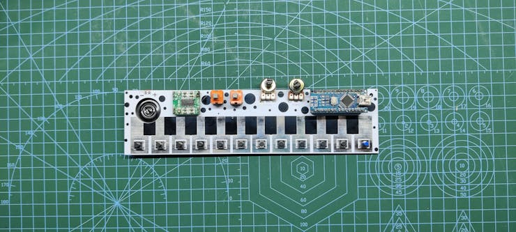 We first add Arduino Nano in its place and then flash it with the code, result will be a working synth playing random humms, we can alter the sound by pressing buttons or modulating the potentiometers or ON/OFF Switch.