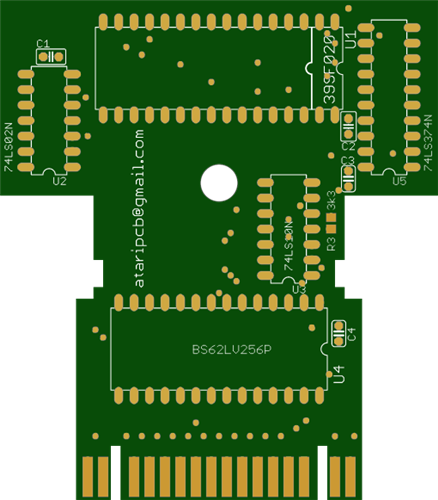 Replacement board for Atari 7800 cartridge C300565. Put W7 jumper if you want to use original MASKROM.