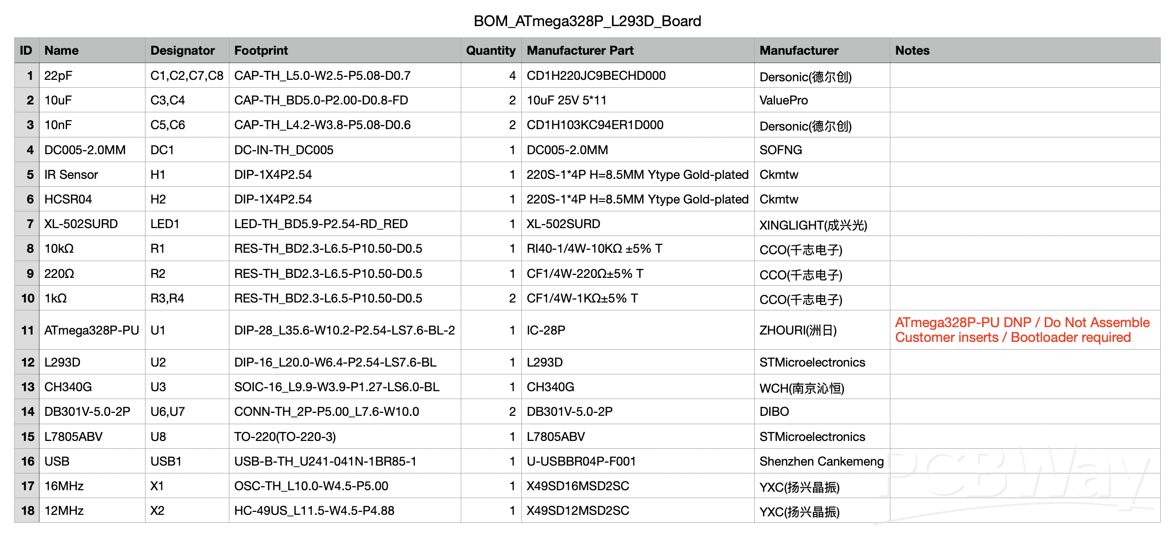 If you are going to use an Arduino model, the circuit can be a bit complicated. To avoid this complexity, I created a prototype and got PCB printing service from PCBWay. On my design board I used an ATmega328P, an L293D motor driver, a CH341 chip to program it easily via USB.