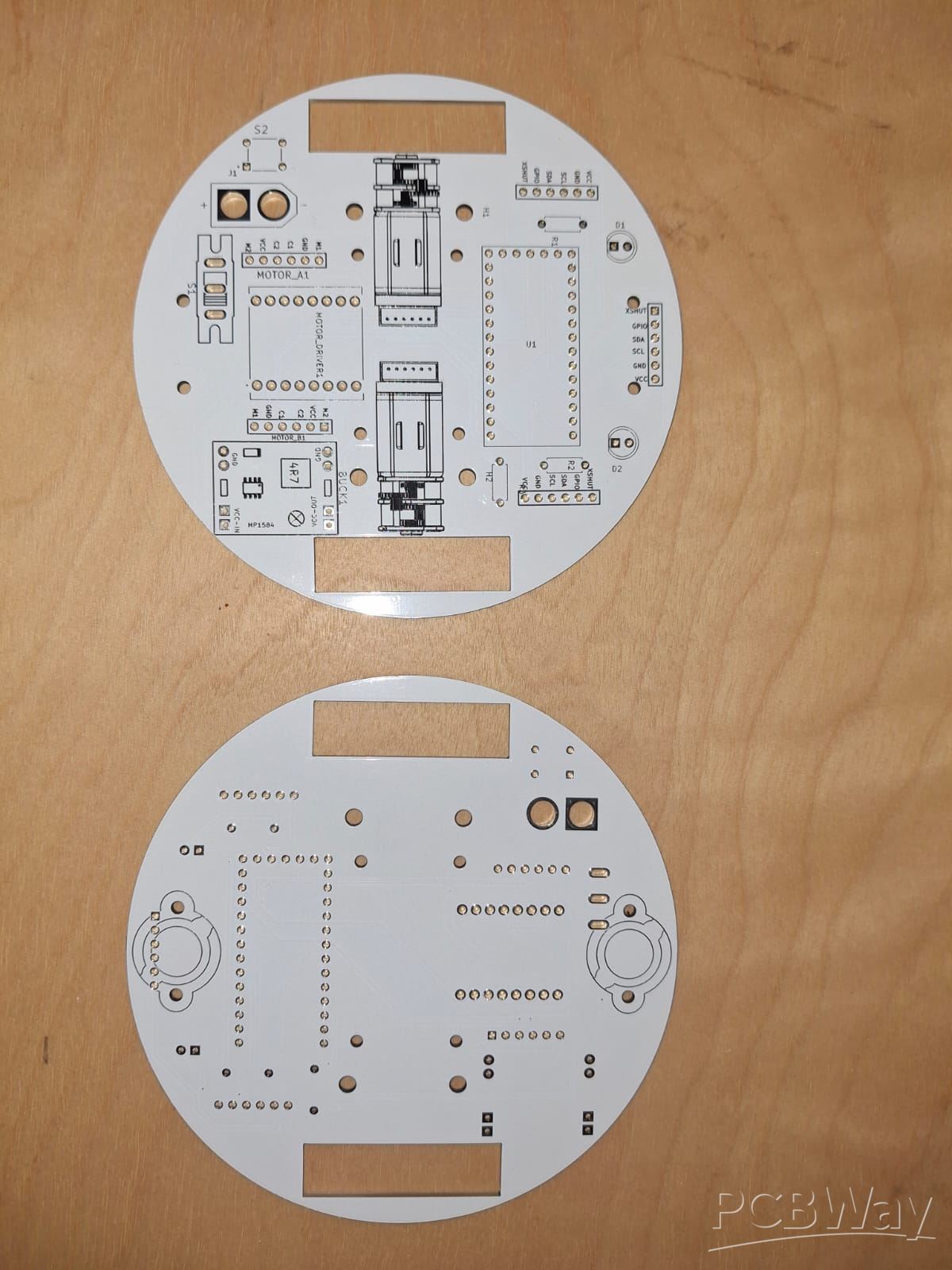 The entire system is built around a compact circular PCB with a radius of 10 cm, optimizing space utilization, balance, and maneuverability while keeping the design clean and competition-ready.