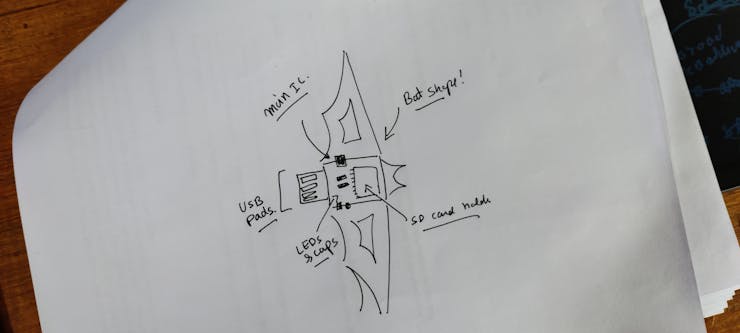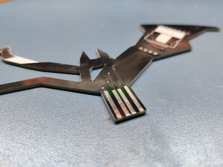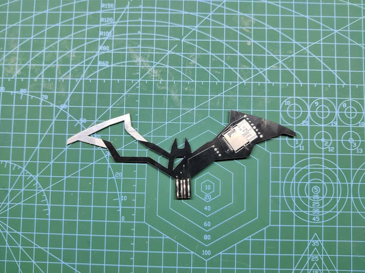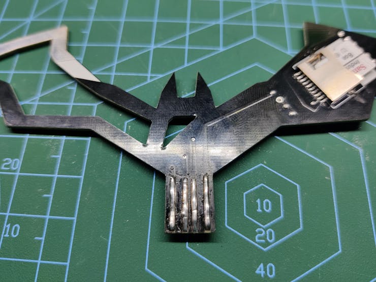 After importing the Batman shape as a PCB outline, I then prepared the SD card Reader footprint so I could solder the circuit that I had salvaged from the commercial SD Card reader.