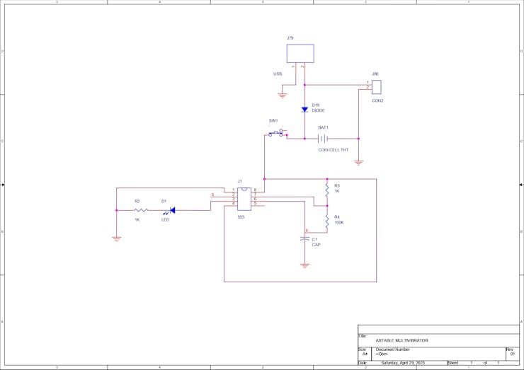 This PCB badge/necklace is entirely driven by a straightforward 555 timer IC, and this post will describe how the circuit, including the PCB design and assembly, was put together. Let's get started with the construction.