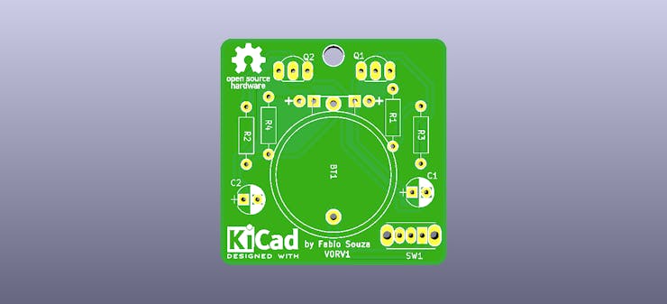 The PCB was designed in Kicad. With two faces is a simple circuit and can be used as a base for beginners in Kicad. Please, make a fork!