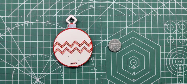 Here's the overall result: a "Blinking Christmas Ornament" for decorating the Christmas tree of an electronics engineer. My idea is to make a bunch of these ornaments and give them as Christmas presents to my friends and relatives.