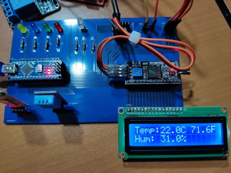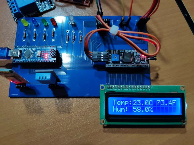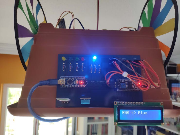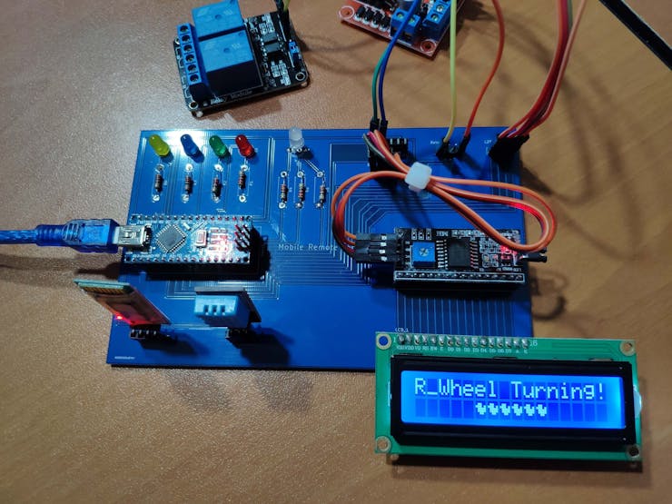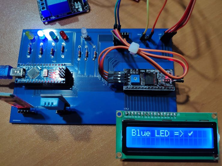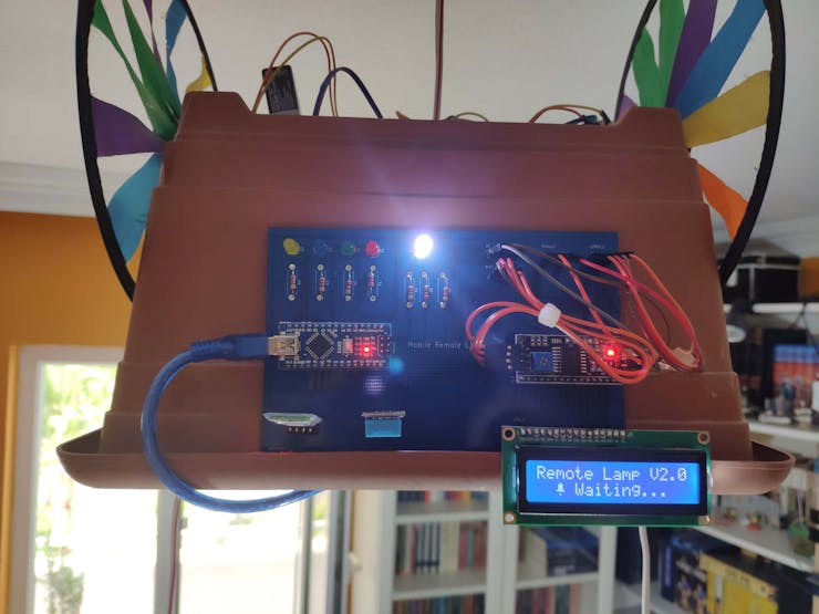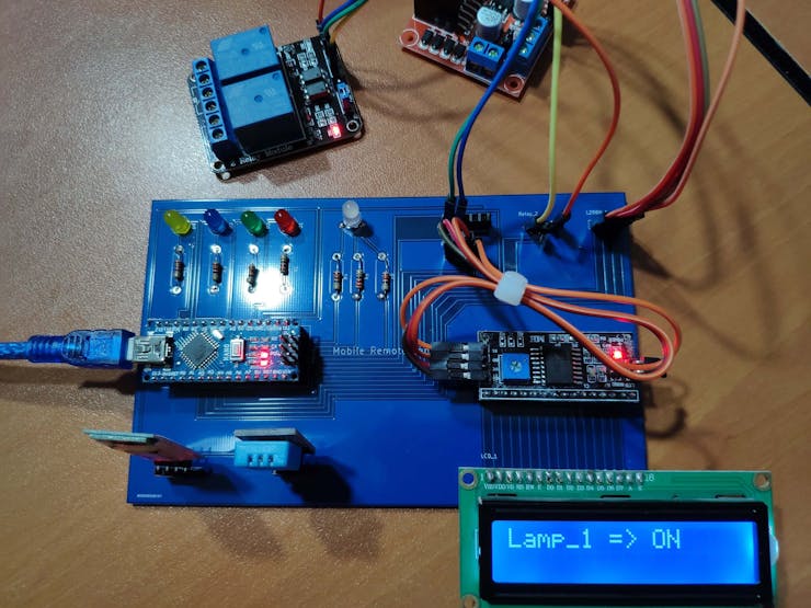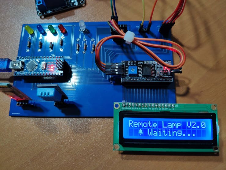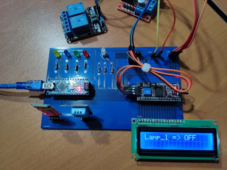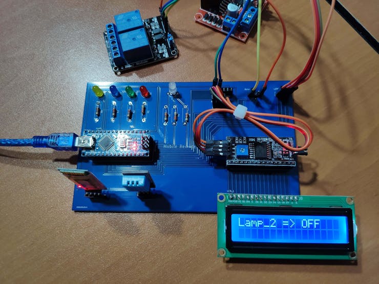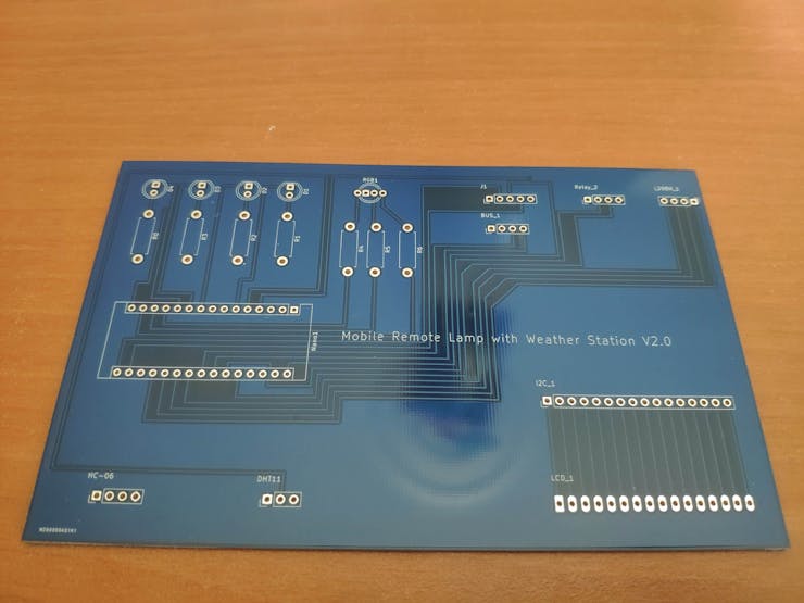 I have created an electronics project named Remote Lamp two years ago, as my new room lighting system with adjustable RGB, LEDs, and some joyful features controlled by a TV remote control. However, I decided to improve the mentioned project since it has irritating redundant wiring due to the LCD screen connections and deficiencies in the user interface due to the TV remote control. So, I took my nascent idea of remote control of my room lighting system and turned it into a mobile remote lighting system controlled by an Android application developed by me. And, to get rid of the redundant wiring and add more features with limited pins on Arduino Nano, I designed a PCB (Printed Circuit Board) named Mobile Remote Lamp with Weather Station V2.0, which includes all built-in component connections.