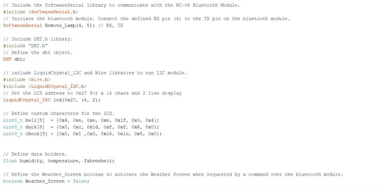 - Include the SoftwareSerial library to communicate with the HC-06 Bluetooth Module.