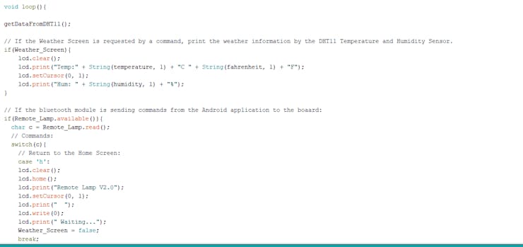 - If the Bluetooth module is available and receiving characters from the Android application, execute the requested command depending on the received character.