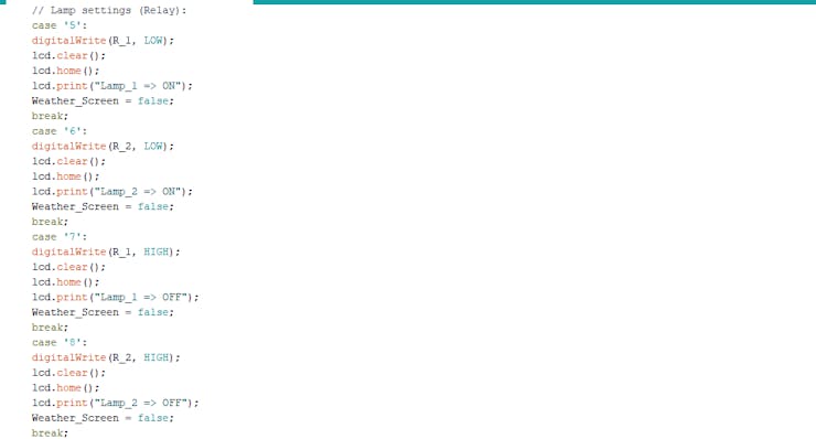 - If the Weather Screen is requested by a command ('t'), print the weather information generated by the DHT11 Temperature and Humidity Sensor.