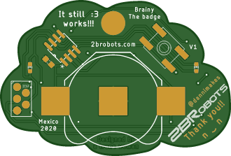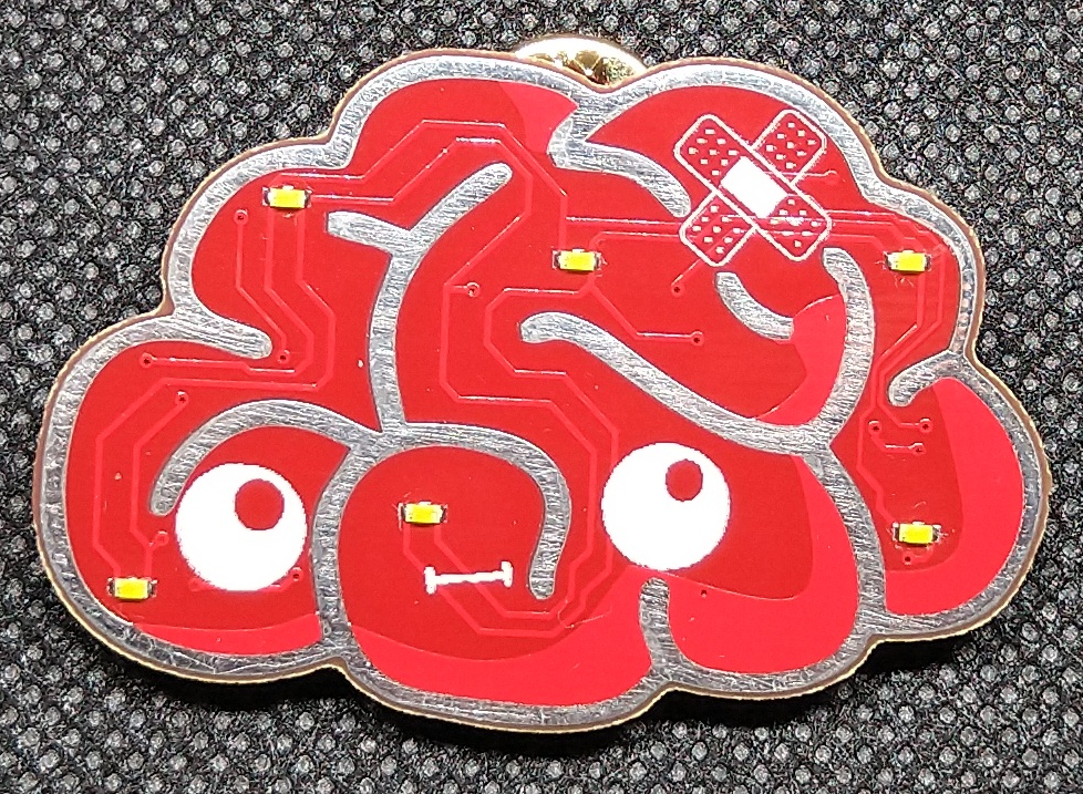 Brainy is a beautiful PCB pin badge, it is shaped like a brain and it has a funny face with a band-aid. Wear it and shine everywhere!