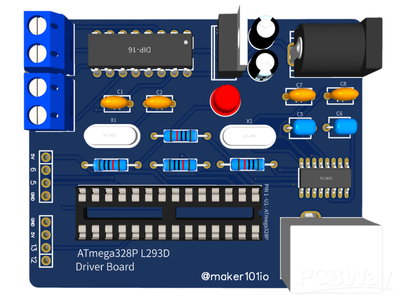 The board basically consists of three main components, an ATmega328P, an L293D motor driver, I used a CH341 chip for easy programming via USB. Only, the CH341 USB chip might seem a bit difficult to solder. But using a simple soldering iron, apply a small amount of solder to the pads on the PCB where the chip will be mounted, then align the chip legs correctly and complete the soldering with the soldering iron. If you are not experienced with soldering, you can use PCBWay's assembly board service and they will send you a ready-to-use board.