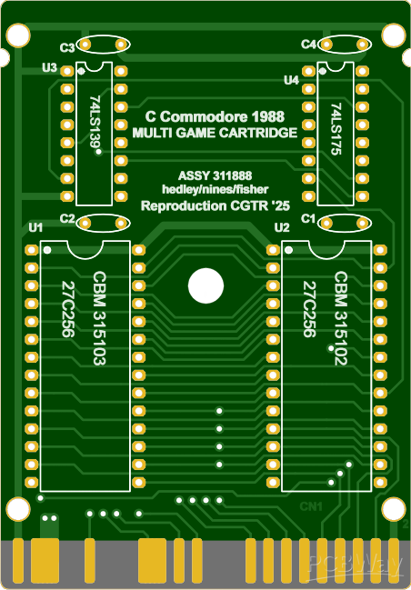 This PCB is a reproduction of Commodore 64 Super Games Cartridge PCB.