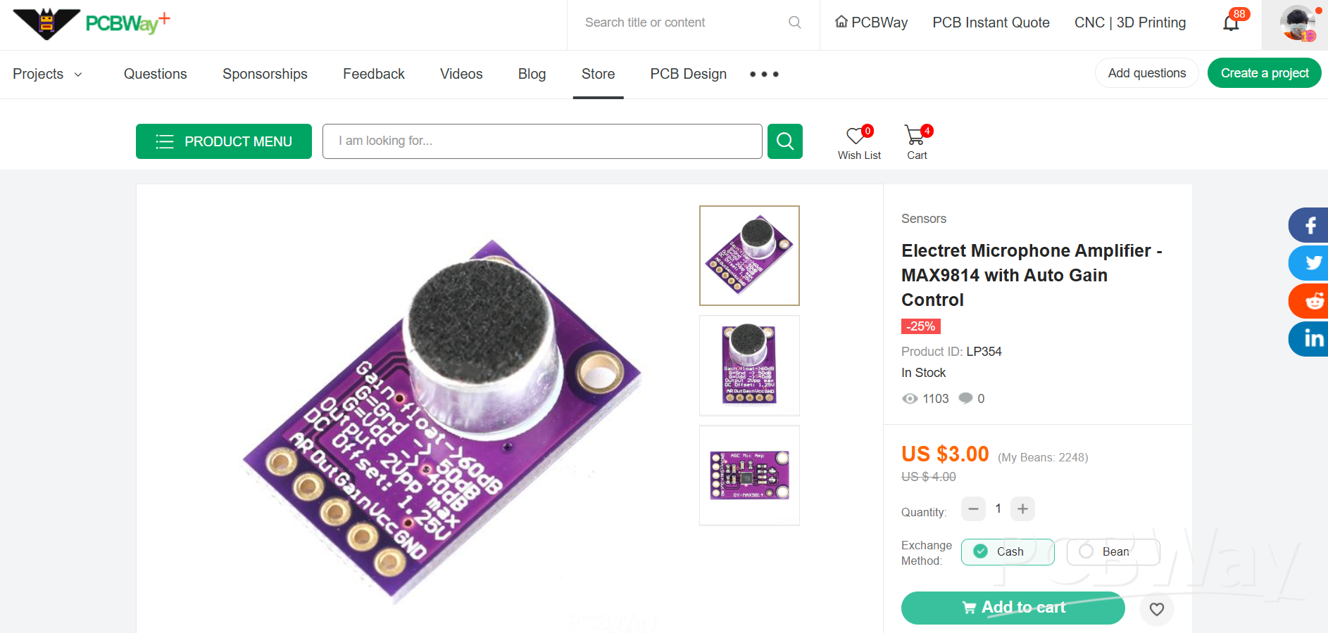 As for sourcing the MAX9814 Microphone Amplifier module along with PICO 2 we used in this project, we got them from PCBWAY's Giftshop.