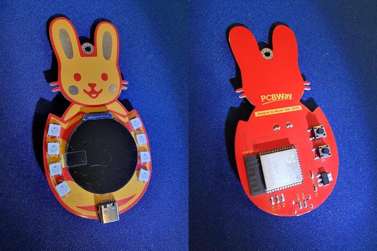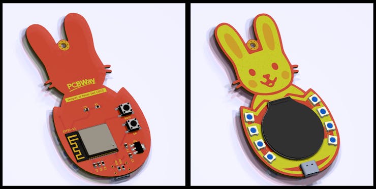 Based on an ESP32-S3 minimal circuit, my final PCB design is of this bunny cartoon shape.