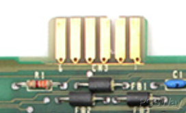 It fits horizontally onto the original motherboard's edge connector CN3, allowing it to be mounted in close proximity by soldering the header connector into the holes.