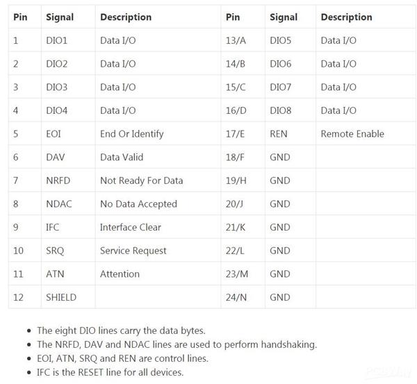 IEEE (PET) cable pinout