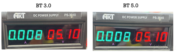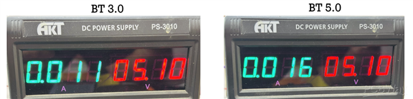 When both BT modules output full signal the scene changes, usually what we see is that a 5.0 BT comes with low power here consuming 80mW and 3.0 around 55mW. This may also depend upon the P-P output signal of both BT modules.