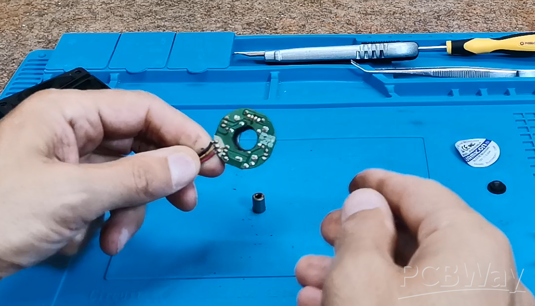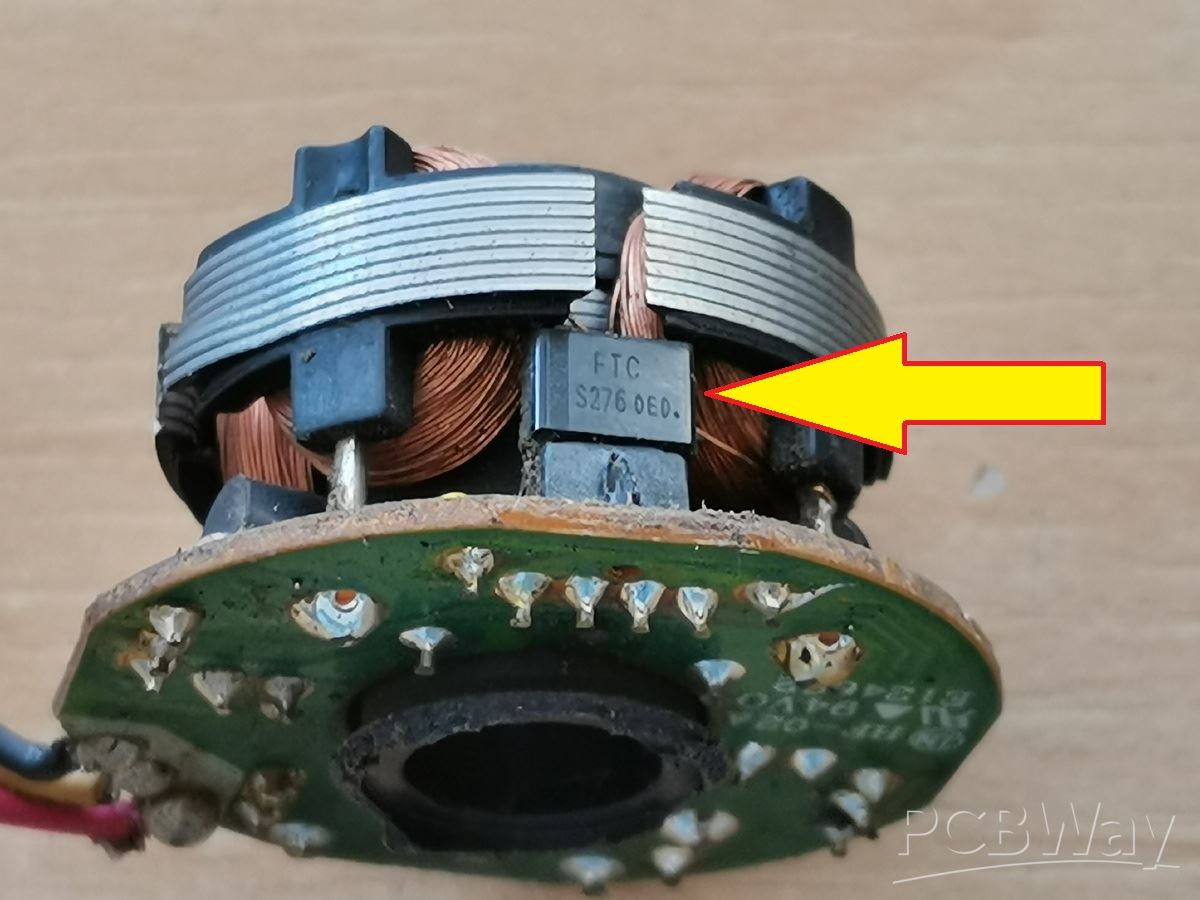 Now we need to remove the stator, under which we can see a round PCB on which the Hall sensor is soldered.