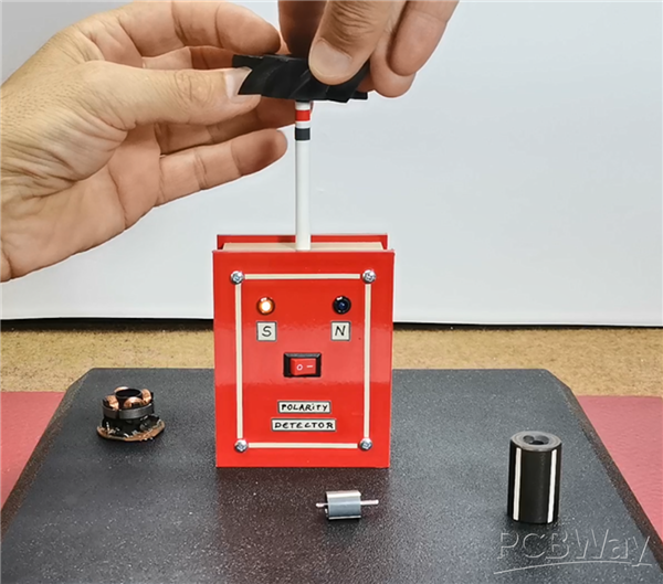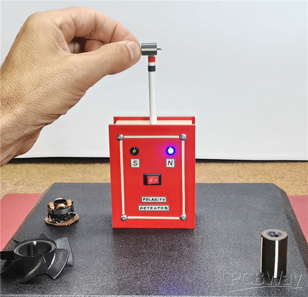 Recently, while working on a project, I needed to determine the polarity of several permanent magnets of different shapes. At first glance, it seemed simple, bringing the magnets closer together to see if they attract or repel, but I still couldn't determine it precisely this way. So I came up with the idea of making a very simple electronic device that would display the poles of the magnets in a very elegant way with two LEDs with different colors for each pole.