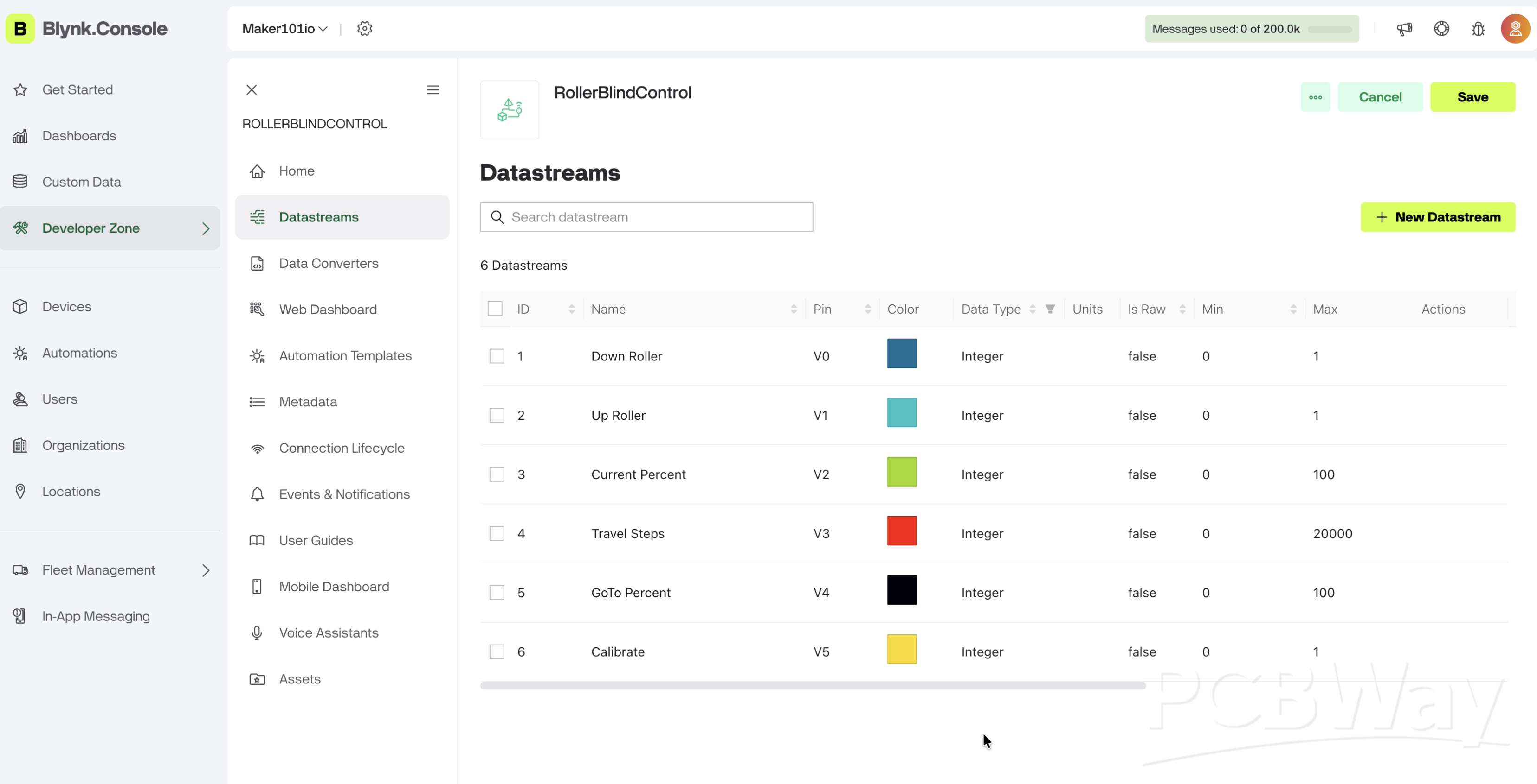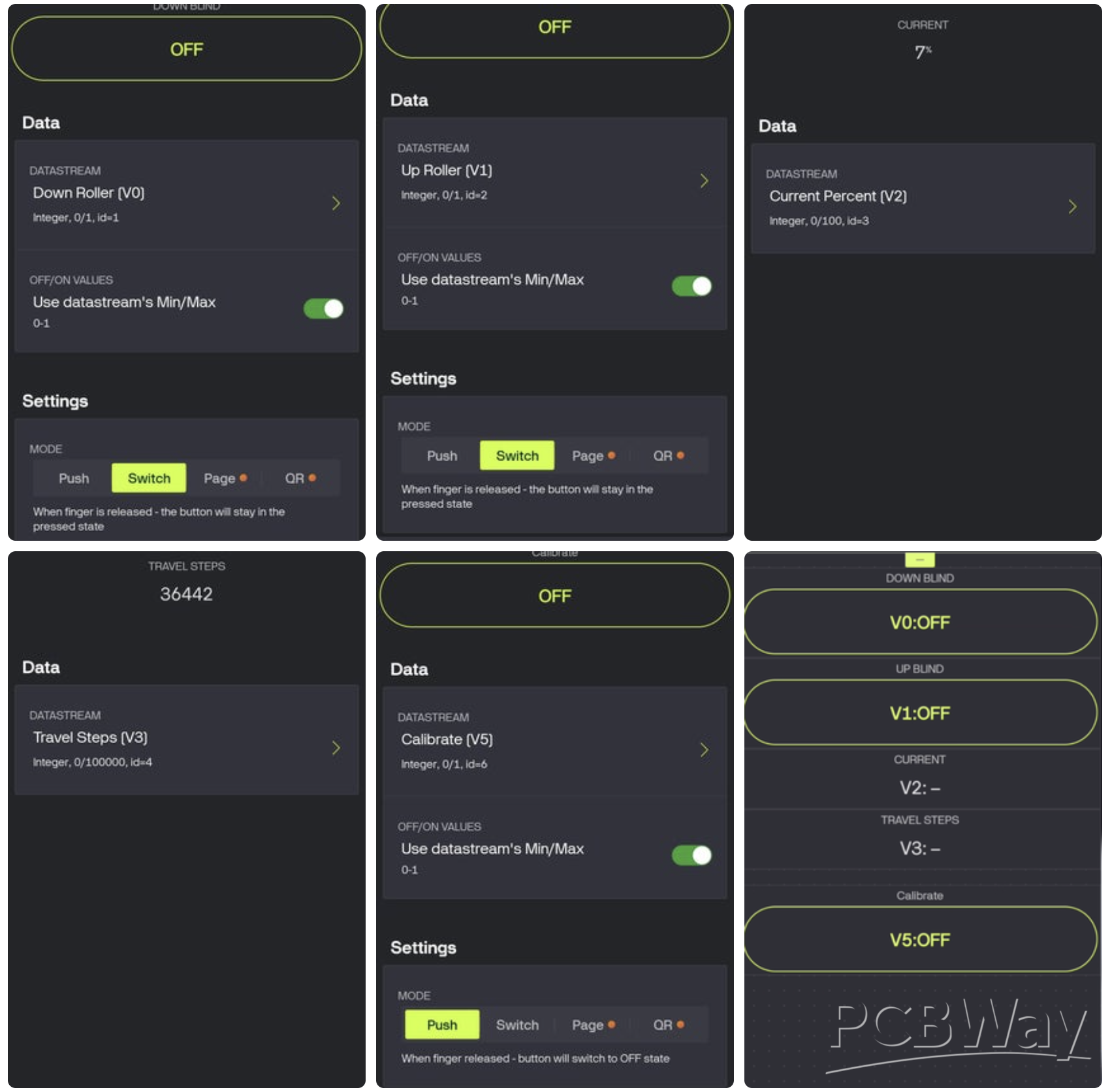 The Blynk Cloud web interface can be used to control the motorized roller blind, but I used the mobile app for better usability. You can download the app from app stores. Then log in with your email account registered with Blynk Cloud. The Templates you created in the web interface will appear on the screen; click on the template to be used. Add the tools to be used in the Template to the screen. These are: