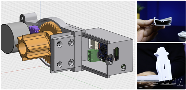 In the original version, installing the 3D gear mechanism model and electronics enclosure required drilling holes into the blind profile and the wall. To eliminate this, I redesigned the entire system with a focus on tool-free installation and compact integration.