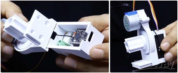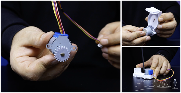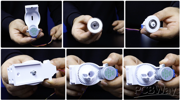 The 3D gear mechanism housing assembly is complete. Let's prepare the circuit board before attaching the circuit enclosure.