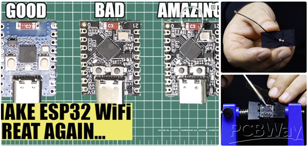 To prevent this, I used a spare adhesive antenna left over from an old WiFi development board. I cut the antenna tip and soldered it directly to one side of the WiFi antenna pad. It doesn't necessarily require an adhesive WiFi antenna; soldering a short piece of copper wire can significantly increase the signal strength.