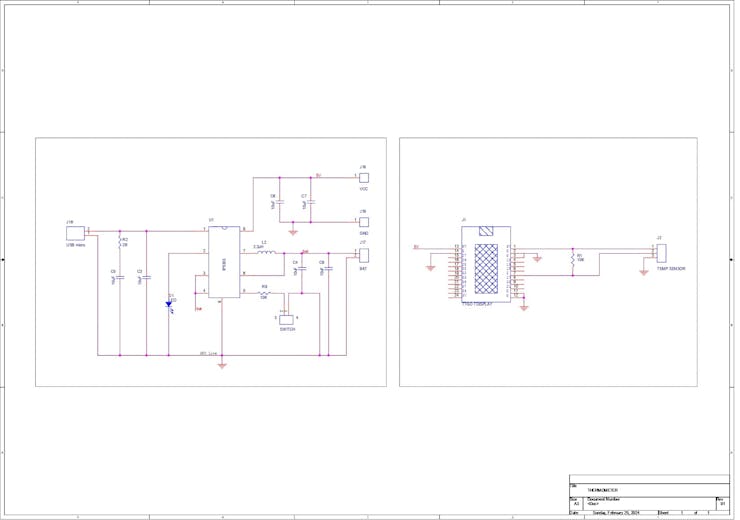 The DS18B20 temperature sensor probe and the TTGO T-display board form the project's core, and we have incorporated a lithium cell circuit onboard to power the circuit. The DS18B20 temperature sensor measures the temperature, which is subsequently shown on the TTGO Board's display.
