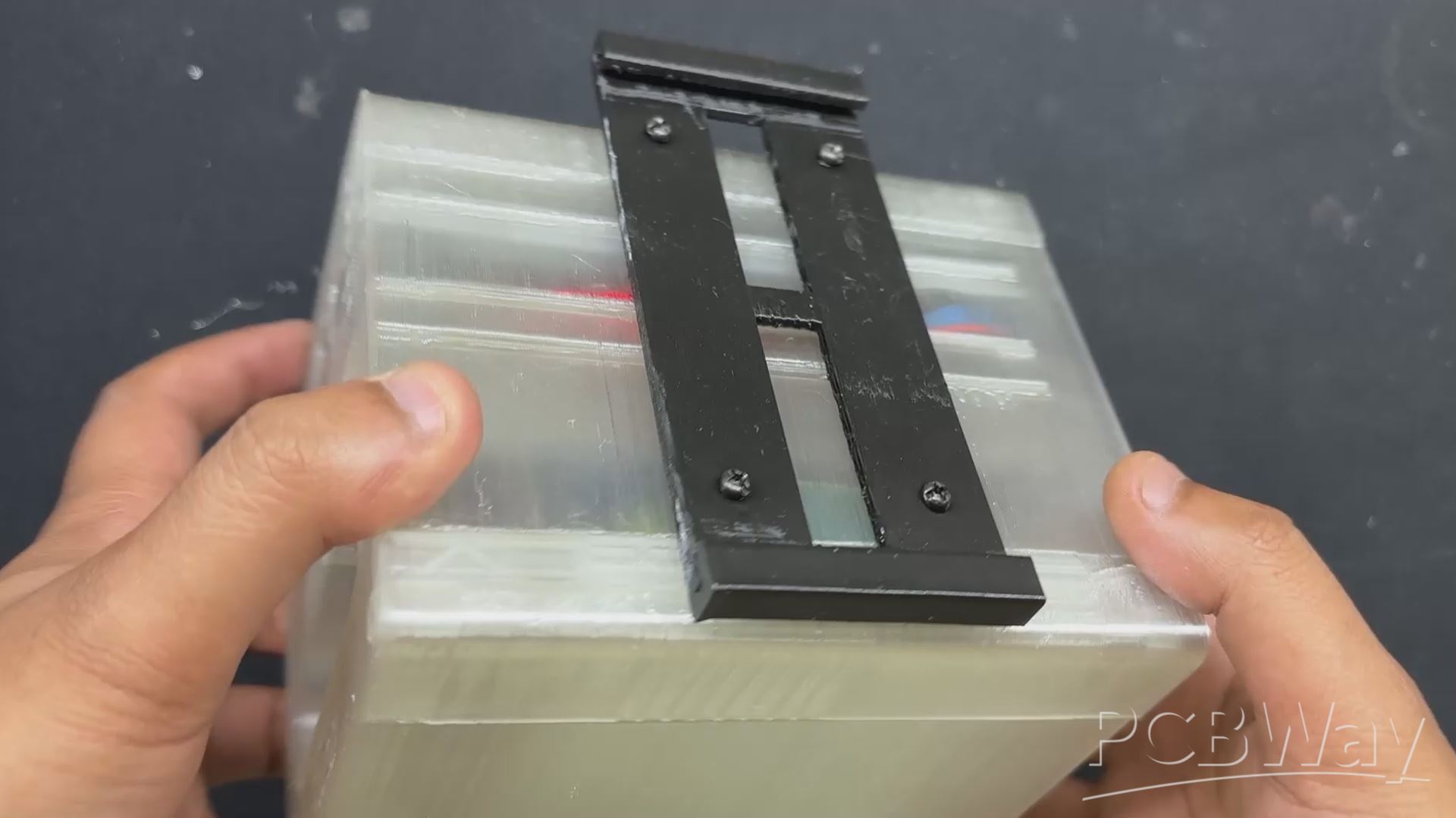 Black PLA was used to print the Latte Panda slide attachment and the sliding rail mount part, while transparent PLA was used to print the main body and lid part.