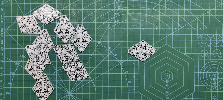 Here's something super cool, a Diamond-shaped PCB Necklace powered by an Attiny13A.