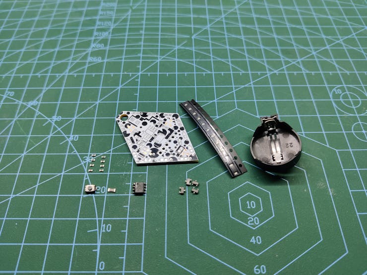 The heart of this Project is an Attiny13A that controls all the LEDs present onboard, also this pendant or necklace is powered by a CR2032 Coin Cell that is on the bottom side of the board.