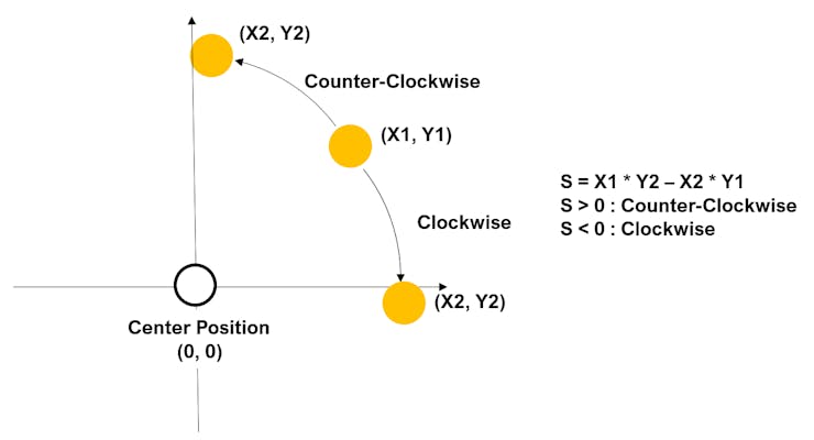 Additionally, It needs to detect the touch movement of the touch clockwise or counterclockwise. If first position is (X1, Y1) and second position is (X2, Y2), S = X1*Y2 - X2*Y1. If S is positive, the touch is counter-clockwise. If S is negative, the touch is clockwise. I used the touchpad interface to set the desired current value. If the touch is clockwise, the current value is increased by 10mA. If the touch is counter-clockwise, the current value is decreased by 10mA. If the touch movement is fast, the current value is increased or decreased by 100mA.
