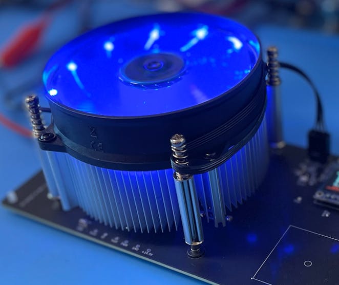 The DCEL has a heat sink that dissipates the heat generated during operation. As the heat sink, I used the CPU cooler LGA115x for PC. It can work with DC 12V and PWM control. Because the ESP32S3 have a PWM output, the fan speed can be controlled too. Between the temperature 40 degree and 50 degree, the fan speed is increased linearly. If the temperature is over 50 degree, the fan speed is set to 100%. Usually, the fan has a detect the rotation speed. The rotation speed can be read to count the pulse signal by the ESP32S3 microcontroller.