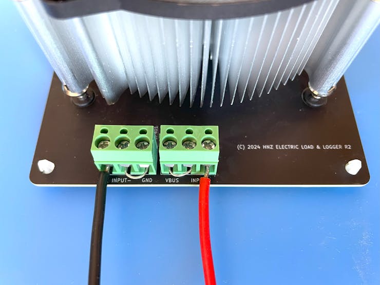 At first, connect the power supply to this electric load as shown in the image below. The Plus line is connected to the 'Input +' terminal, and the GND line is connected to the 'Input -' terminal. And Input- is connected to the GND terminal, and Input+ is connected to the 'VBUS' terminal. This allows the device to measure the voltage.