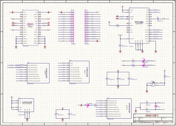 The Dano is a small, complete, and breadboard-friendly board based on the ATmega328 (Arduino Nano 3.x). It has more or less the same functionality of the Arduino Duemilanove, but in a different package. It lacks only a DC power jack, and works with a Mini-B USB cable instead of a standard one.