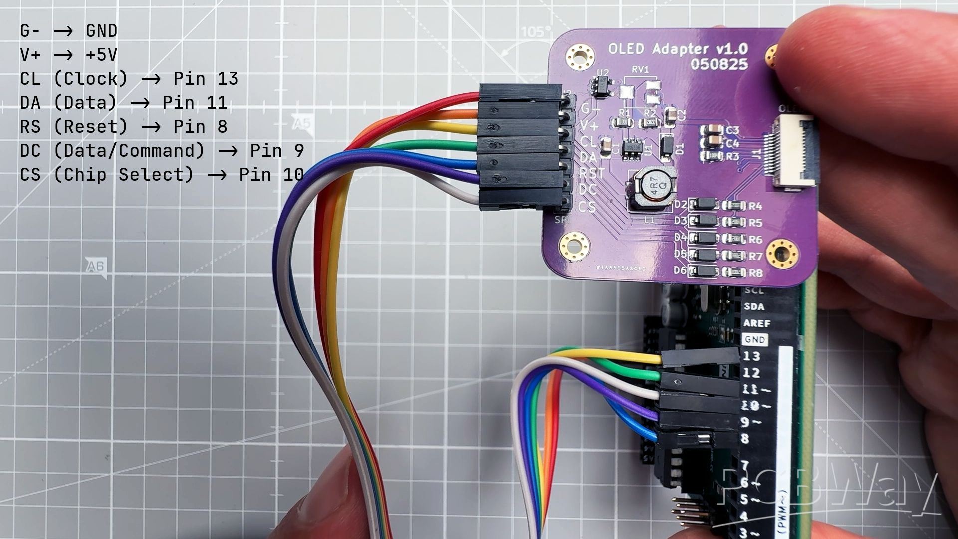 Driver PCB Board for Transparent OLED display 128x128px SH1107 1.12" to be used mainly with Arduino (5V) and ESP32 (3.3V) boards.