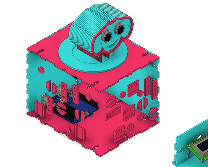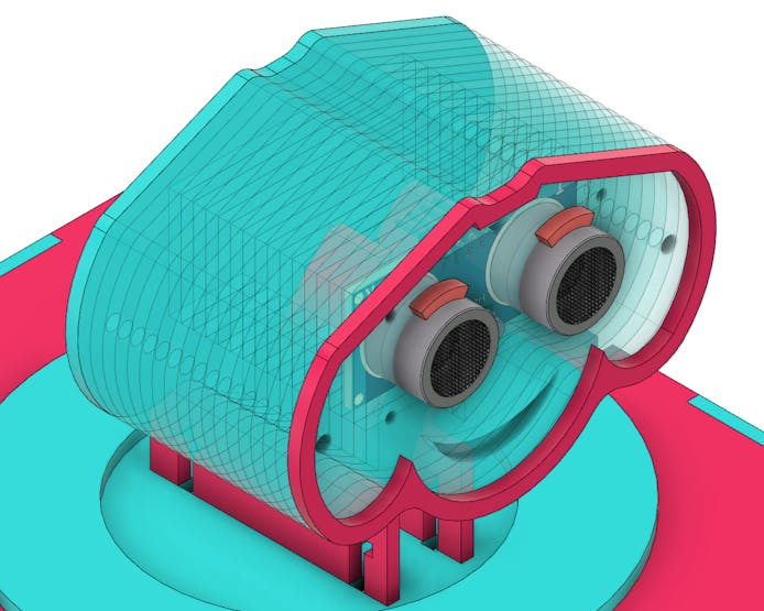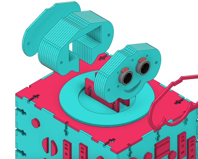 The ultrasonic sensor was placed with the intention of reacting according to the presence of the user. Both the contour of the face and the eyebrows were shaped to highlight the expression of the educational robot.