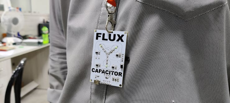 So this is my "FLUX Capacitor" PCB Badge which is a replica of the actual Flux Capacitor which was in back to the future movie.