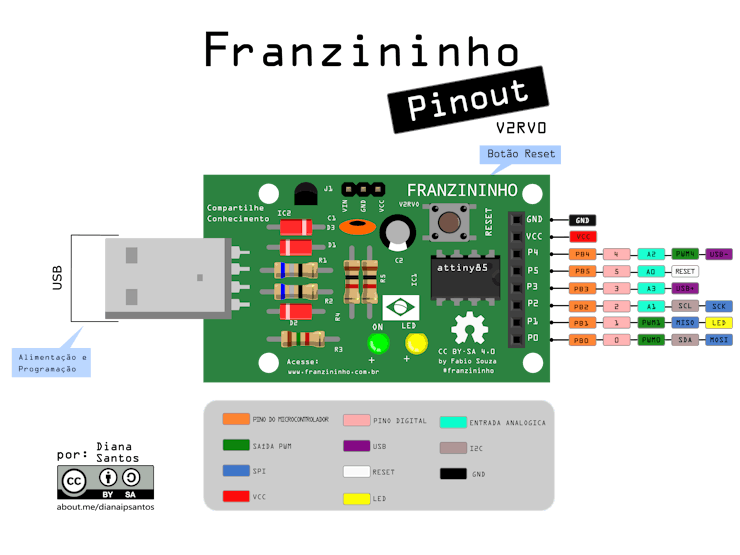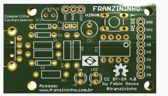 Based on the ATtiny85 microcontroller, the Franininho DIY has simple hardware designed in a way that allows people to assemble and even make their own boards at home.