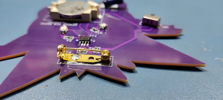 Also, I've added a Brooch Pin pad to this board so it can be a wearable device.