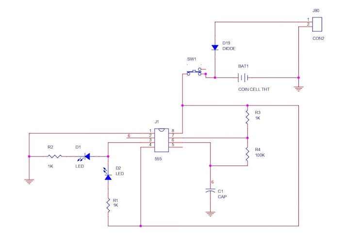 For powering this badge, we have to add a CR2032 Lithium Coin cell in its holder and turn on the switch. Both LEDs will start flickering in a chasing sequence, the first led will glow and the second will stay low, then the second led will turn HIGH and the first led will turn LOW, and this process will get repeated over and over.
