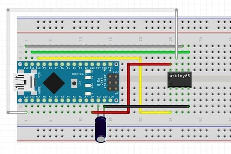 Instead, I'll be using the ISP flashing method which will utilize the SPI Pins of attiny13A to burn the bootloader in it and then Flash.