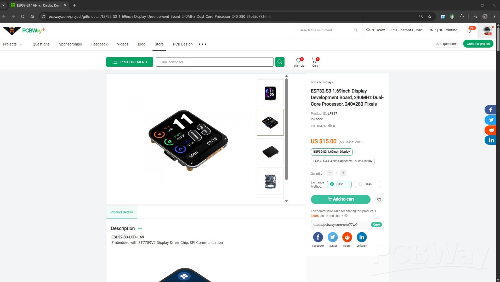 As for sourcing the ESP32-S3-LCD-1.69 we use in our project, we got it from PCBWAY's Giftshop.