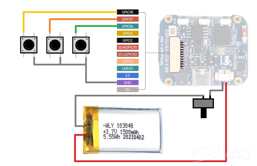 - Waveshare ESP32-S3-LCD-1.69 Screen (provided by PCBWAY)