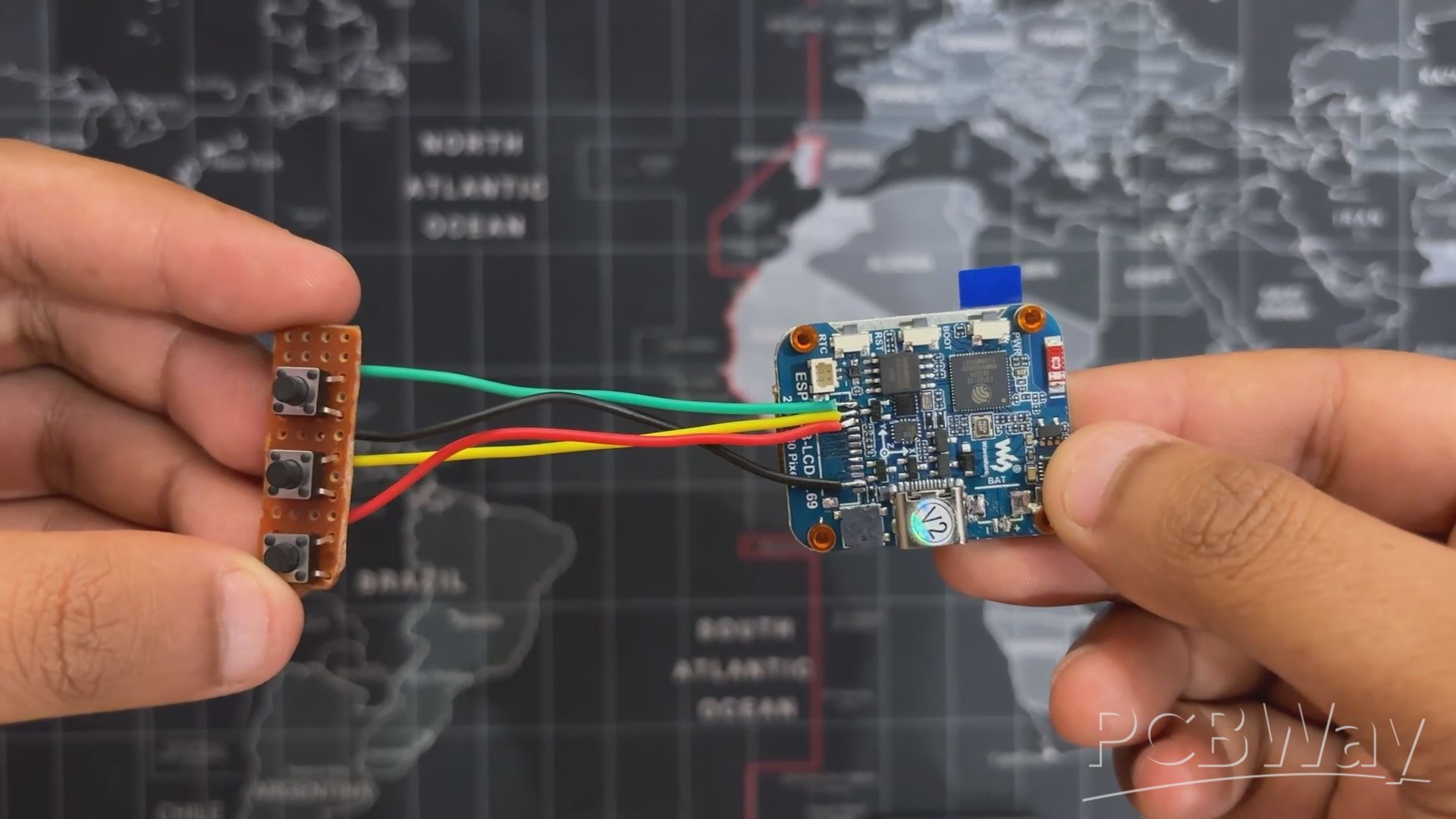 A custom three-button PCB made on a Perf board will be used for the inputs. The GPIO Pins of the ESP32 S3 Board will be linked to this Perfboard button PCB.